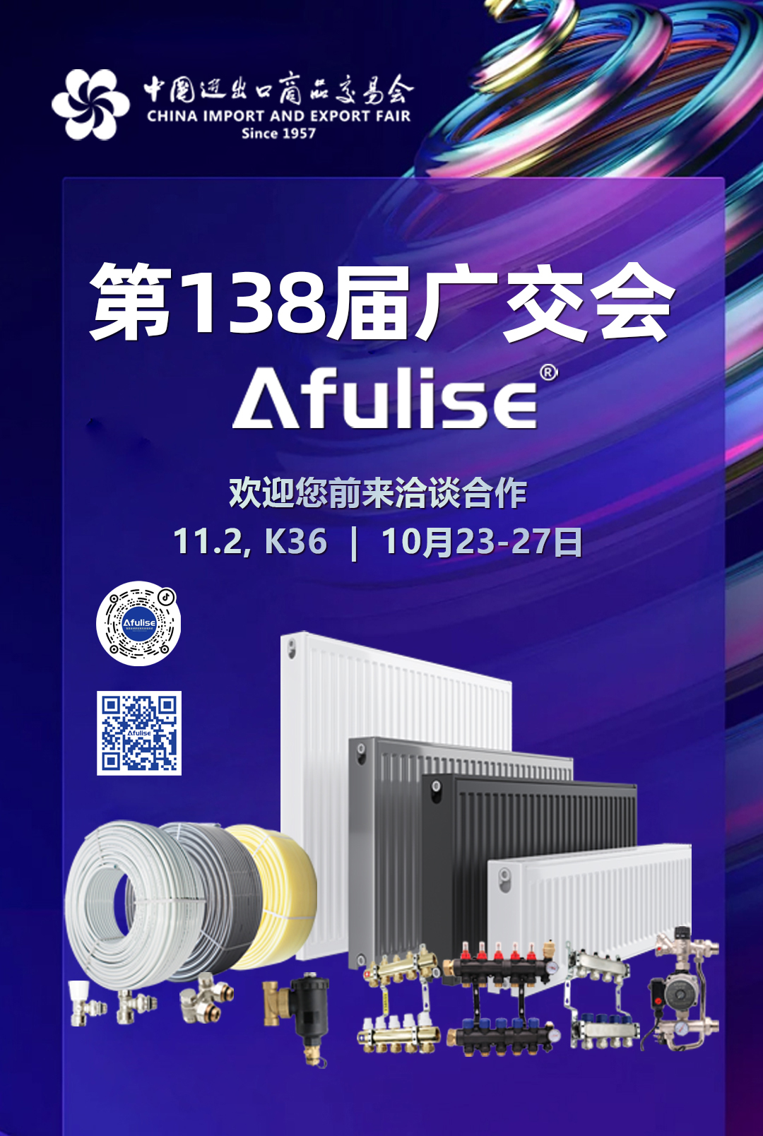 第138届中国进出口商品交易会(广交会)将于2025年10月23日盛大开幕,埃夫利舍诚挚邀请您及您的团队莅临我们的展位(NO.11.2 K36)。